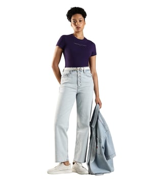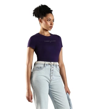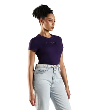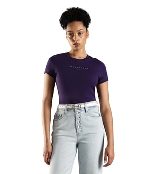 TOMMY HILFIGER Purple Cotton Slim Fit T-Shirt