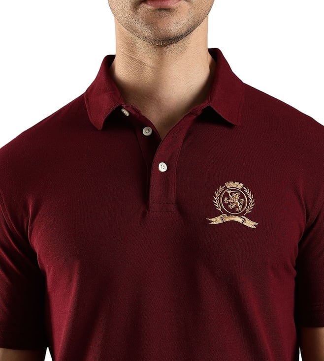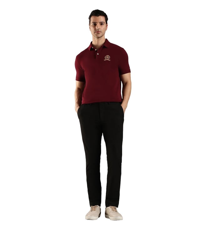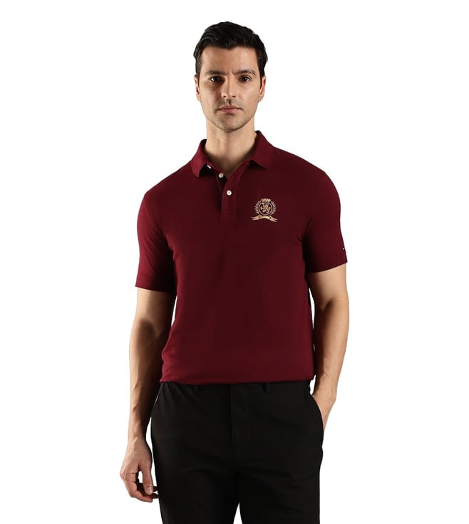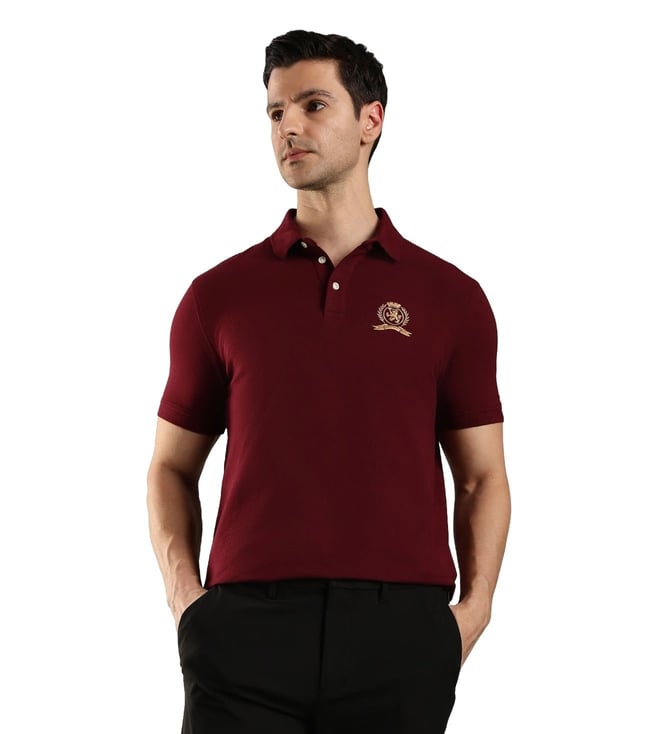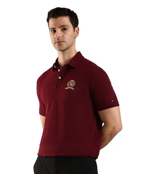 TOMMY HILFIGER Red Cotton Regular Fit Logo Printed Polo T-Shirt