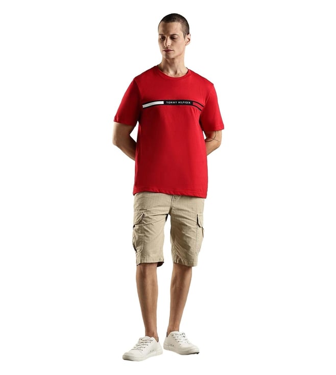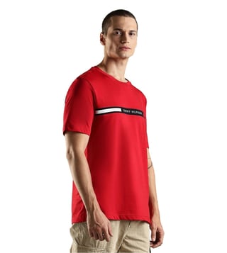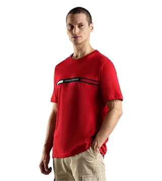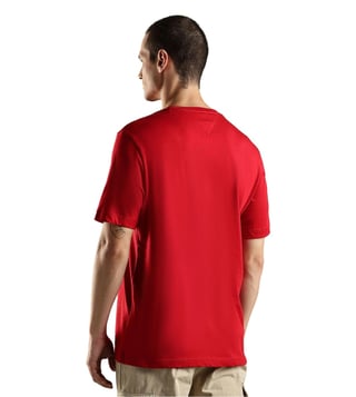 Red Cotton Regular Fit Logo Printed T-Shirt