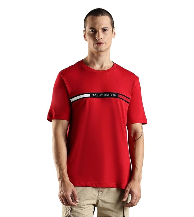 Elevate your casual style with this eye-catching t-shirt from Tommy Hilfiger. This masterpiece showcases a bold logo pattern that demands attention. Designed for the modern man who appreciates western aesthetics, it's the perfect choice for your basic-casual wardrobe. The versatile design effortlessly transitions from laid-back weekends to casual outings, making it a must-have staple.