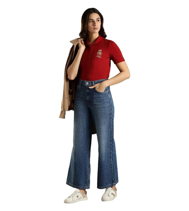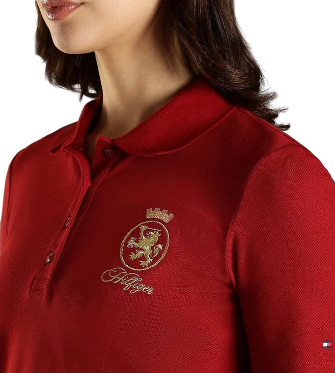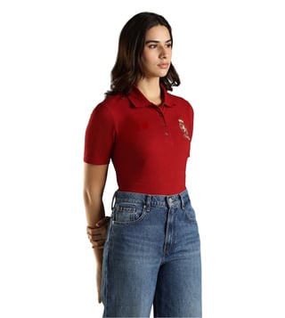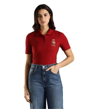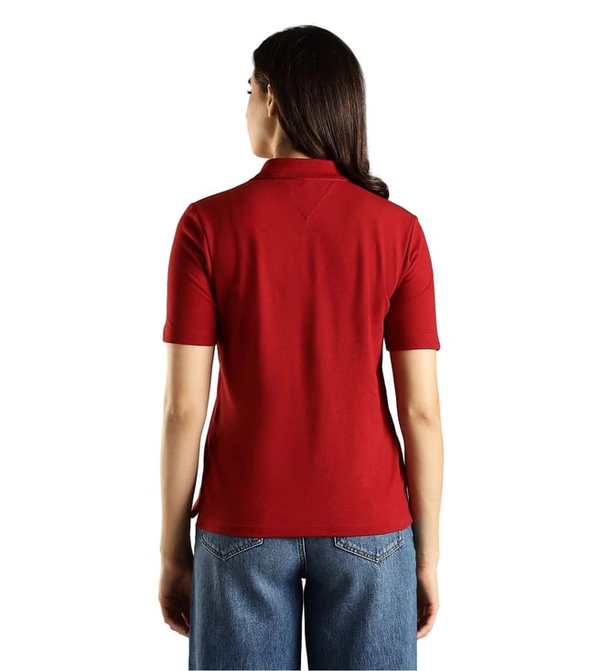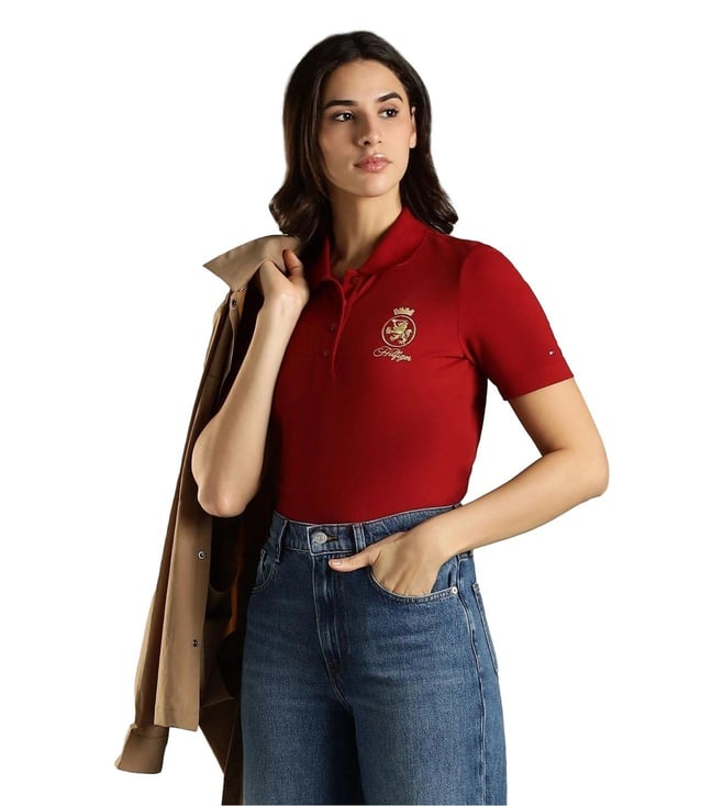 Add a splash of colour to your casual wardrobe with top from Tommy Hilfiger for women. Featuring a stylish logo pattern this top combines comfort and flair effortlessly. The polo design adds sophistication to your basic casual wear making it perfect for various informal settings. Whether heading to a weekend brunch or a casual day out this t-shirt keeps you polished and confident. Pair with shorts or jeans for an eye-catching ensemble.