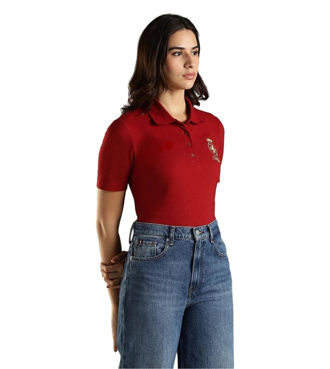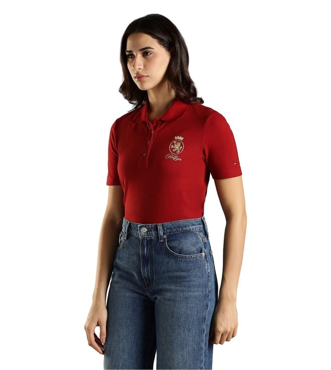 TOMMY HILFIGER Red Cotton Regular Fit Logo Printed Top