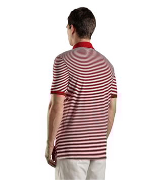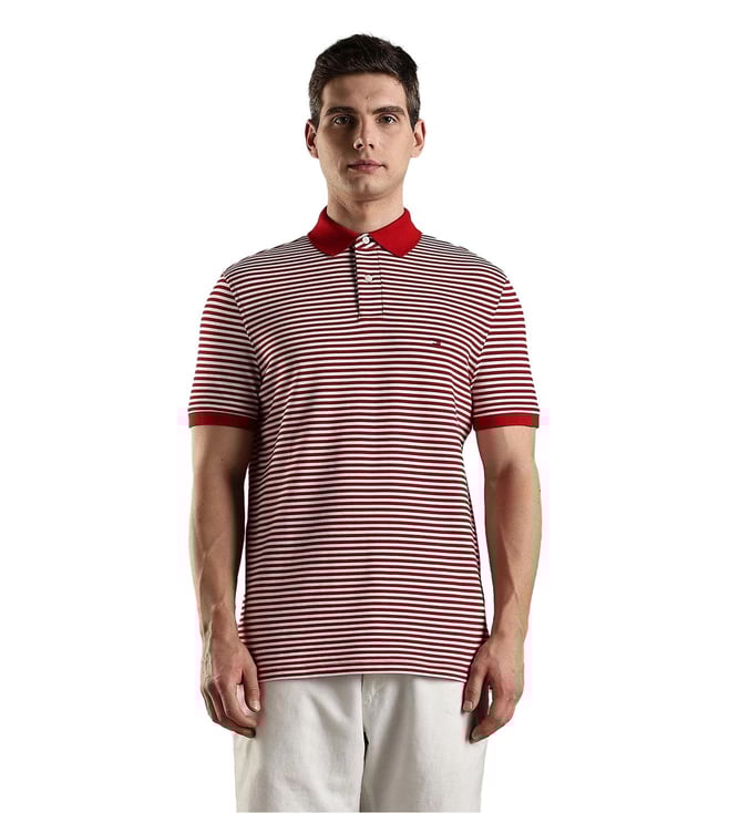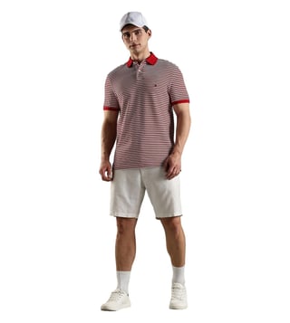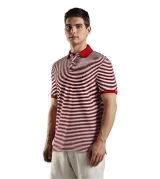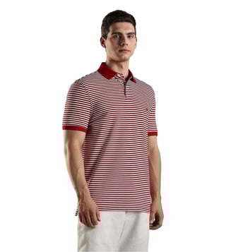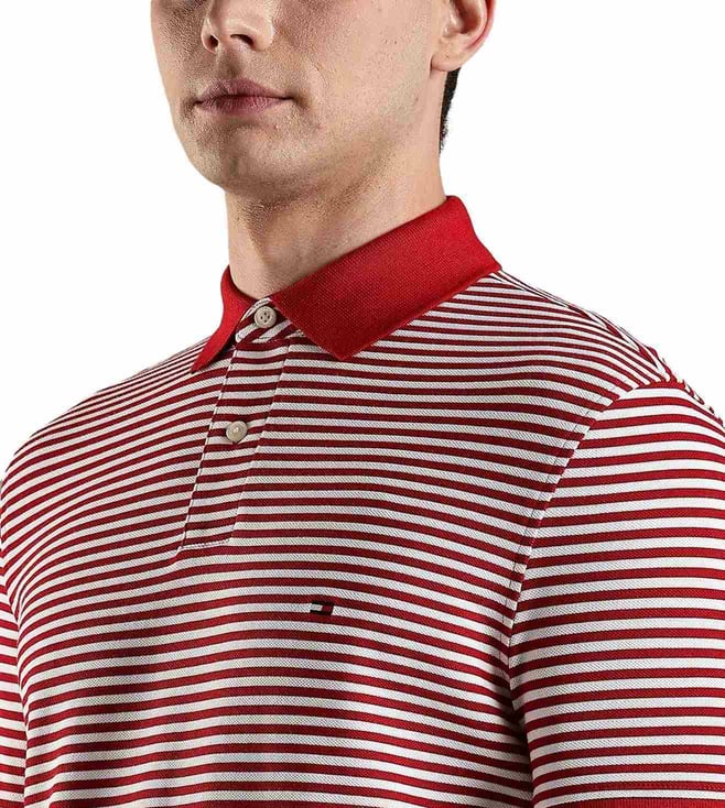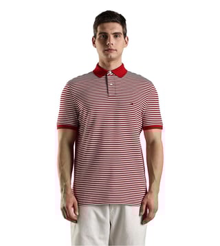 TOMMY HILFIGER Red Cotton Regular Fit Striped Polo T-Shirt