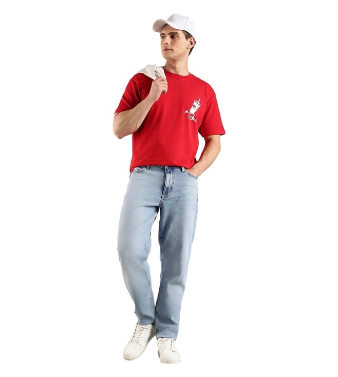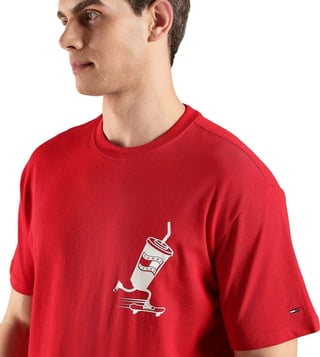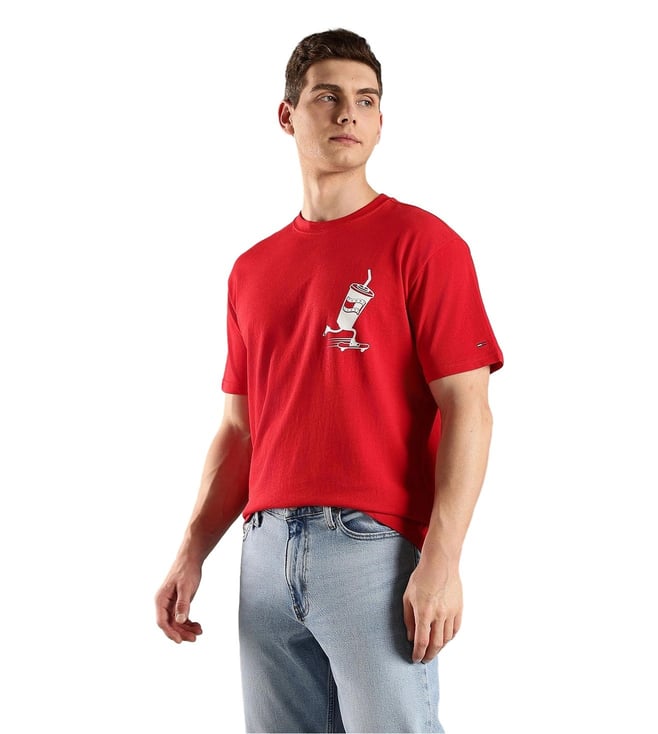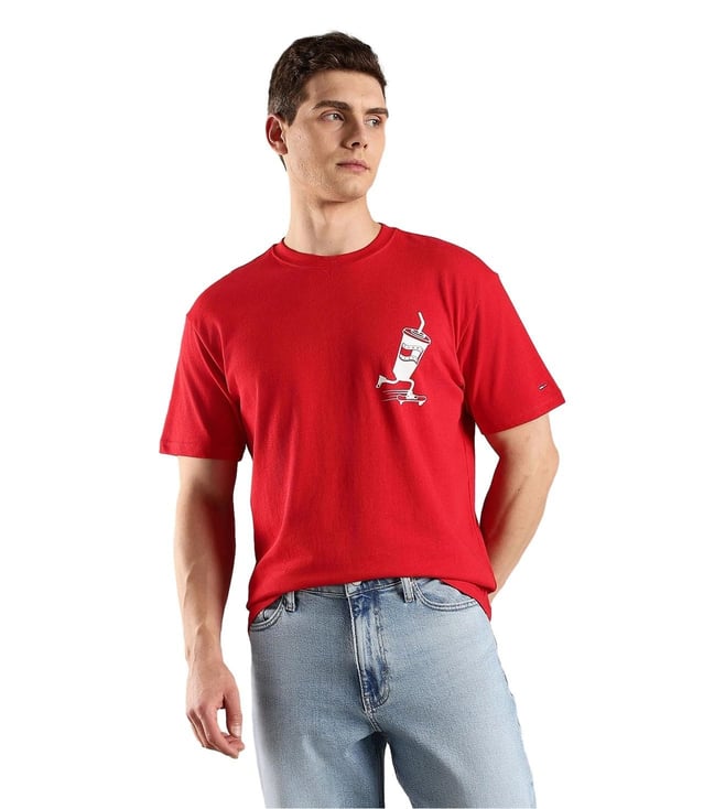 TOMMY HILFIGER Red Graphic Relaxed Fit Cotton T-Shirt