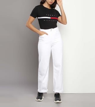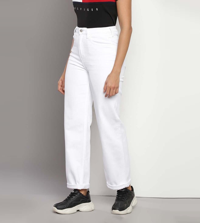 TOMMY HILFIGER Relaxed Fit Optic White Lightly Washed Mid Rise Jeans