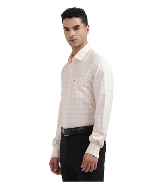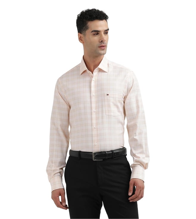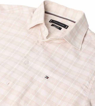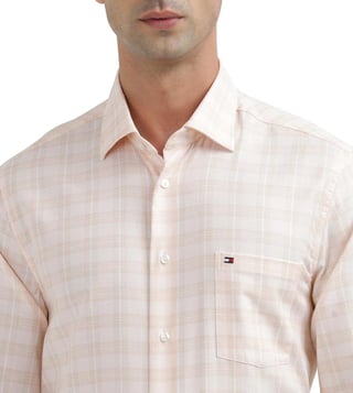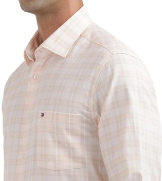 Cast a touch of radiance to your appearance when you wear this shirt from Tommy Hilfiger. The regular fit offers a symmetrical aesthetic appeal. It delivers a clean and well-proportioned look without seeming too baggy or snug. Coordinate it with your other casual clothing from the wardrobe. A contrasting pair of footwear is sure to amp up the overall get-up.