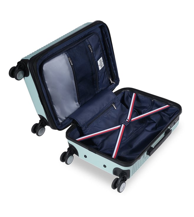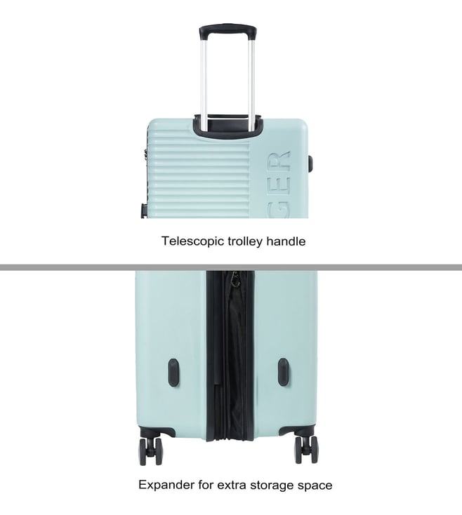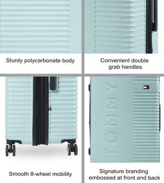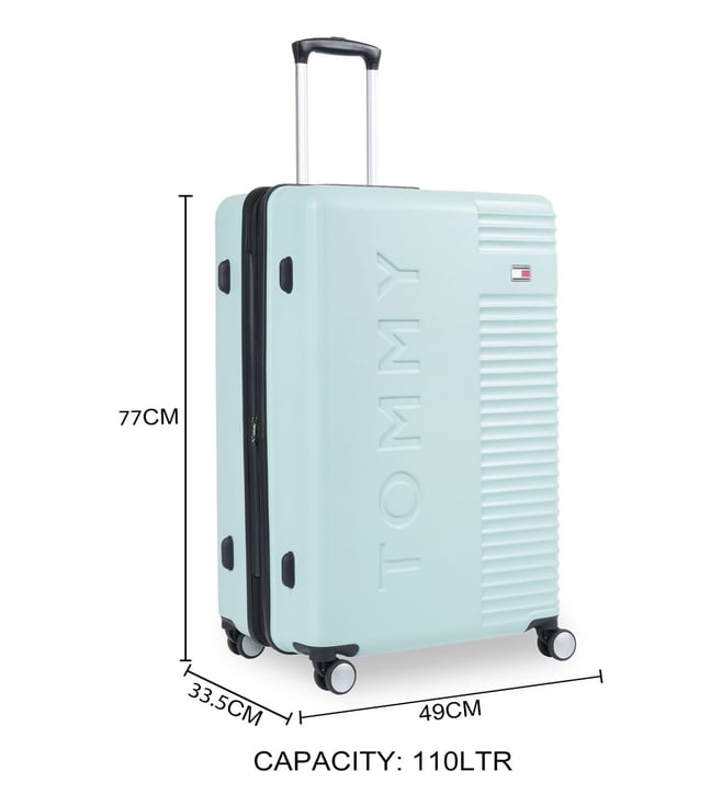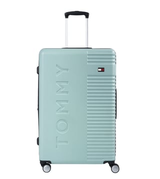 The TOMMY HILFIGER rockfill unisex cargo luggage in a sophisticated sage green is designed for those who need maximum space and security without compromising on style. This large, hard-sided suitcase is constructed from a robust polycarbonate body, ensuring it can handle any journey. It features a convenient expander for an extra 25 percent of packing room and a flushed tsa-approved lock for superior security. The 8 double wheels and retractable telescopic aluminum handle make maneuvering this large bag surprisingly easy.