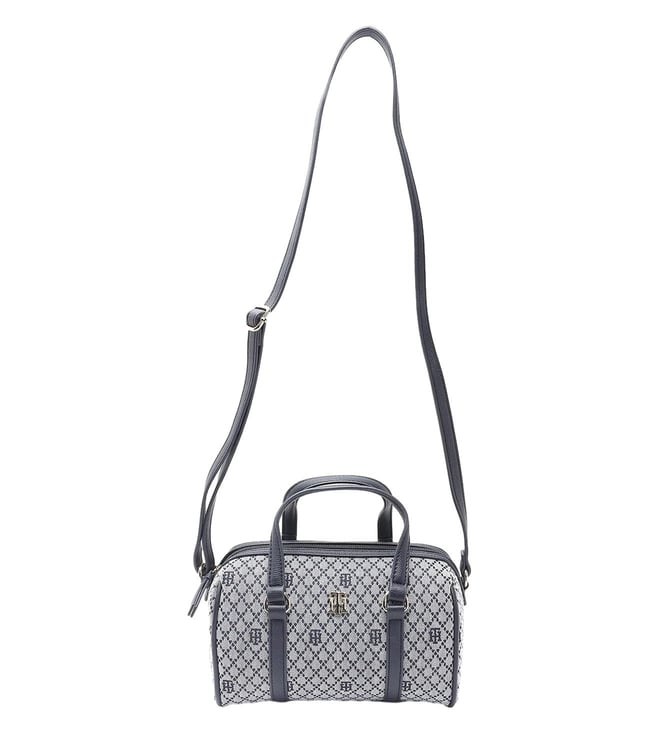 Navy & White Greige Logo PU Satchel