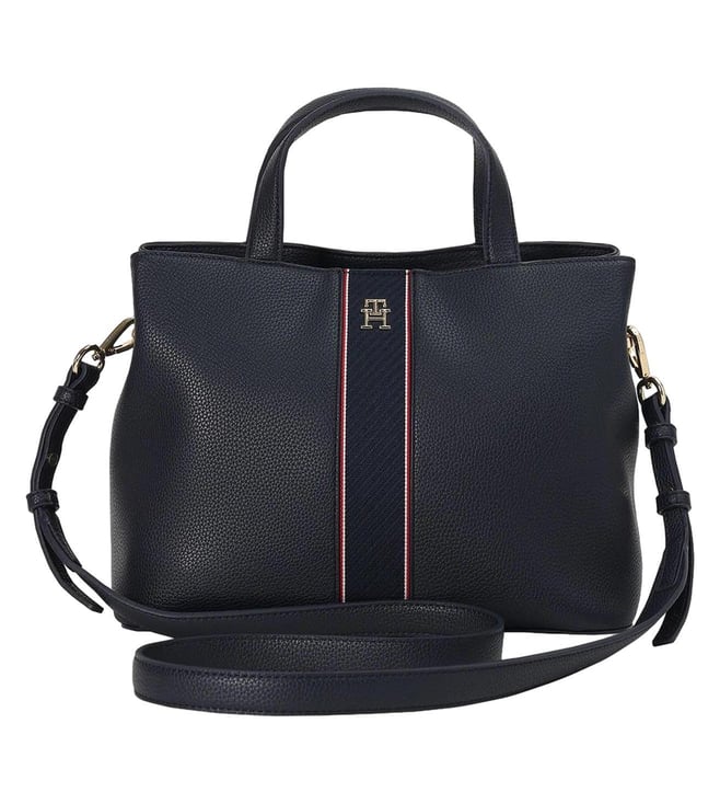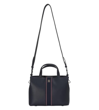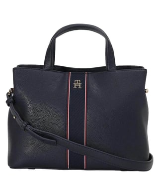 Make a statement with satchel from Tommy Hilfiger, adorned with an eye-catching logo pattern. Designed for the fashion-forward woman, this bag seamlessly blends style and functionality for your basic-casual needs. Whether you're running errands or meeting friends for coffee, this versatile accessory adds an edge to any outfit.