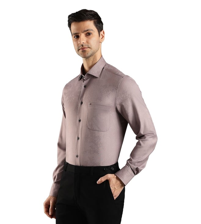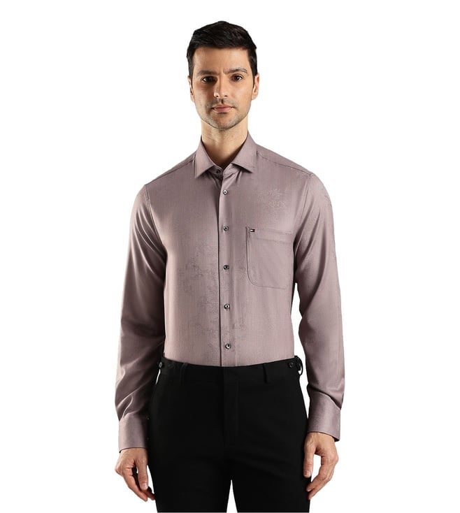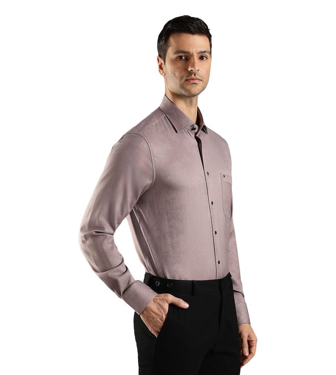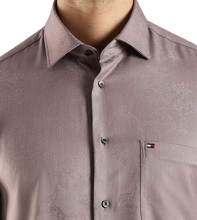 TOMMY HILFIGER Taupe Regular Fit Self Pattern Shirt