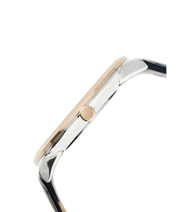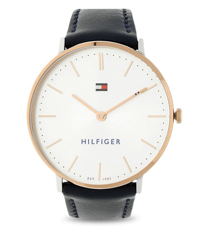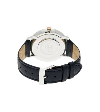 Showcasing a fusion of style and functionality, this women's analog watch from Tommy Hilfiger is a great pick. Functional on a quartz movement, the white round dial exudes plain three hands, stick markings at five-minute intervals and doted markings at one-minute intervals. The black genuine leather strap with a stitch detailing is completed with an adjustable buckle clasp to ensure a proper fit on the wrist. Club this water-resistant timekeeper with a pair of leggings and a kurti to look modish.