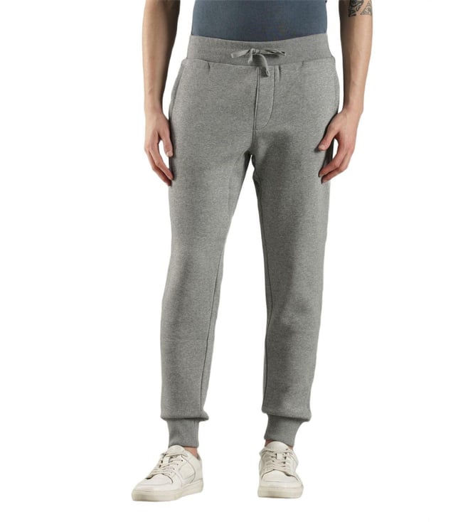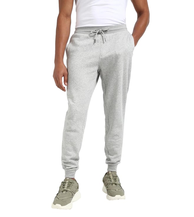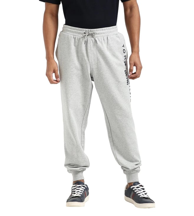 Light Grey Heather Cotton Regular Fit Logo Printed Joggers