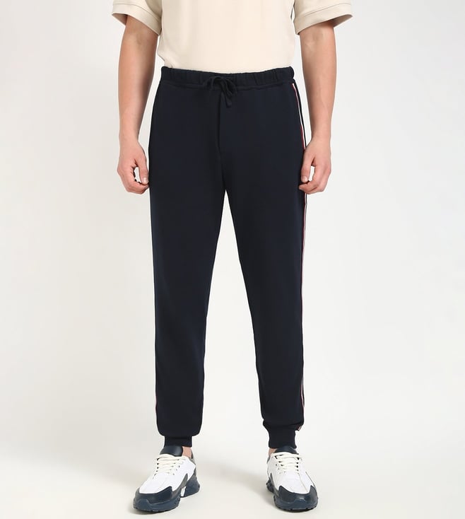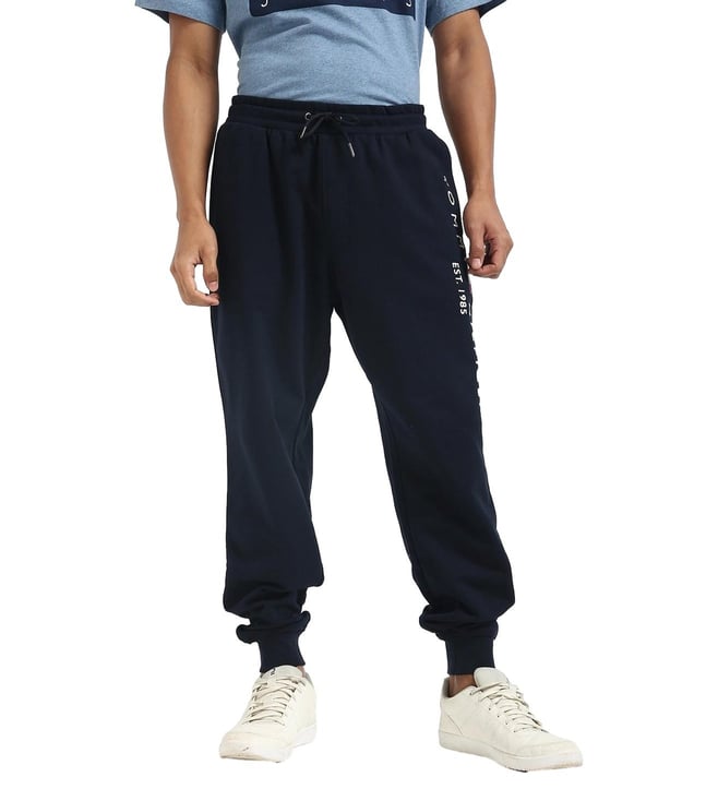 Navy Cotton Regular Fit Solid Joggers