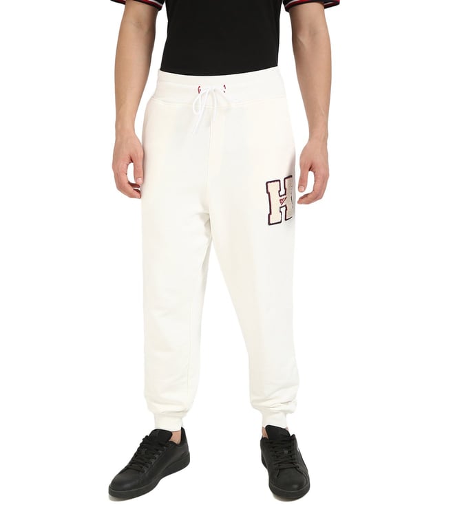 White Cotton Regular Fit Logo Printed Trackpants