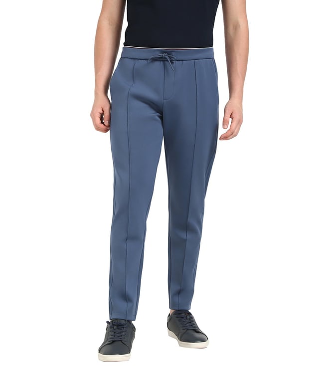 Blue Polyester Regular fit Solid Trackpants