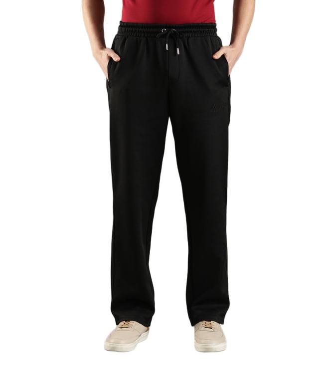 Blue Cotton Regular Fit Logo Printed Trackpants