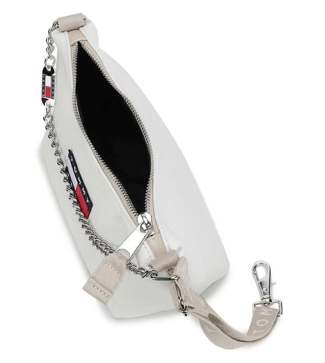 Flaunt your panache for fashion and inspire the rest with your unique style by carrying this women's hobo bag from TOMMY HILFIGER. It features a zip closure for added attraction. Made of premium quality PU for durability, this triple white hobo bag has a removable strap for carrying comfort. It is a must-have because of its style as well as comfort at the same time.
