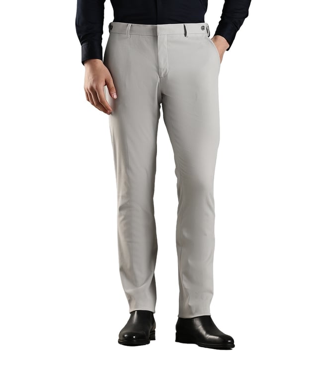 Light Grey Cotton Regular Fit Trousers