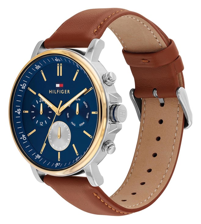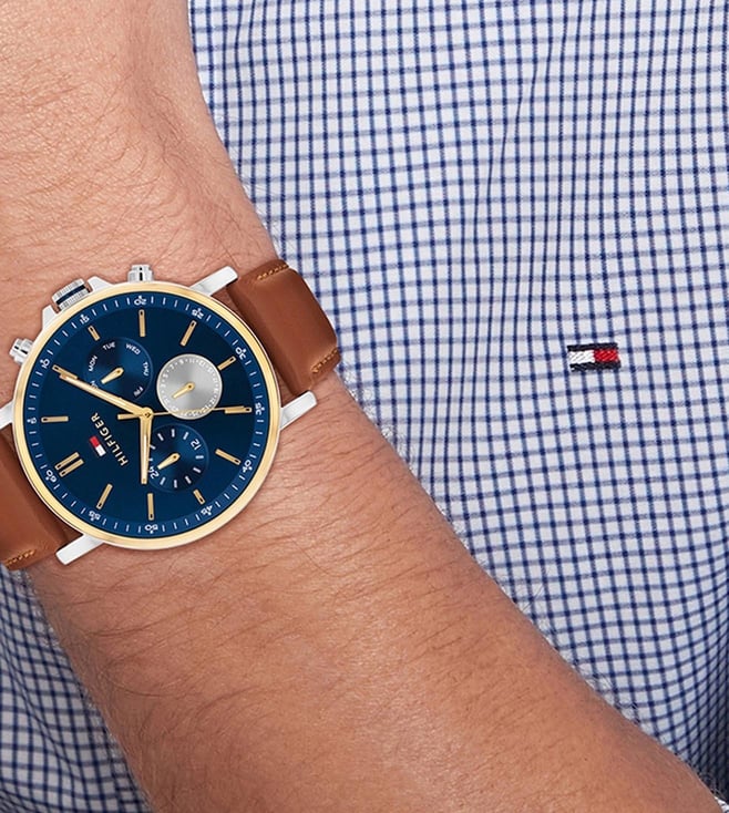 Elevate your style with the Tommy Hilfiger Tyson Collection Quartz Navy Round Dial Men's Watch. Featuring precise Quartz Movement, this watch offers reliable timekeeping wrapped in a sleek navy round dial design. Perfect for both casual and formal occasions, it combines classic elegance with modern sophistication. With the trusted quality of Tommy Hilfiger, the Tyson watch is a timeless accessory for the confident man.