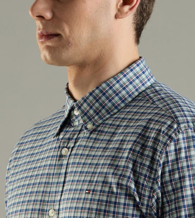 TOMMY HILFIGER U.S Collection Green Cotton Regular Fit Check Casual Shirt
