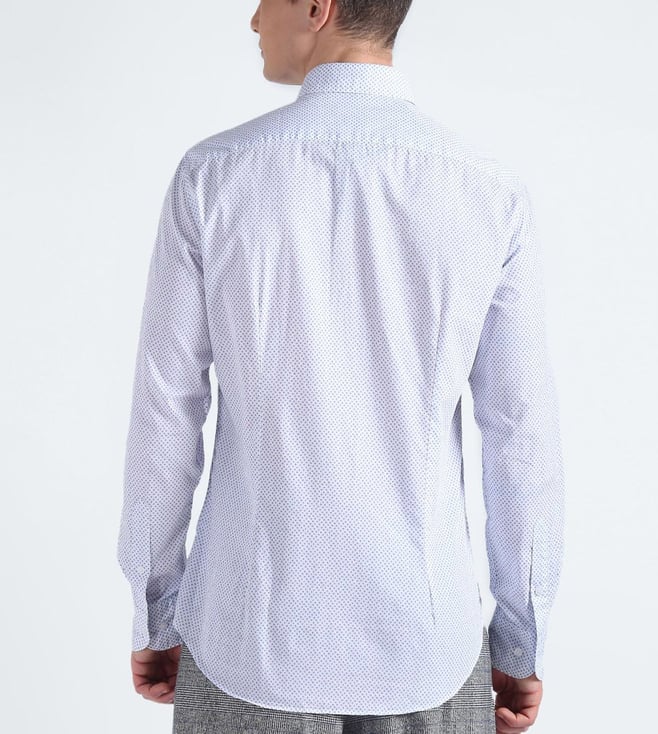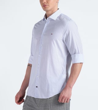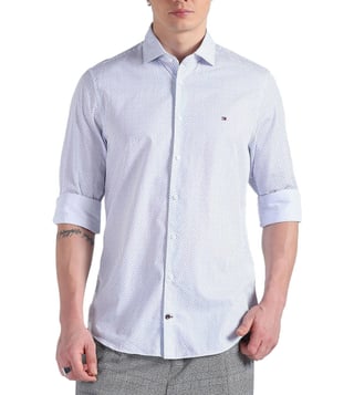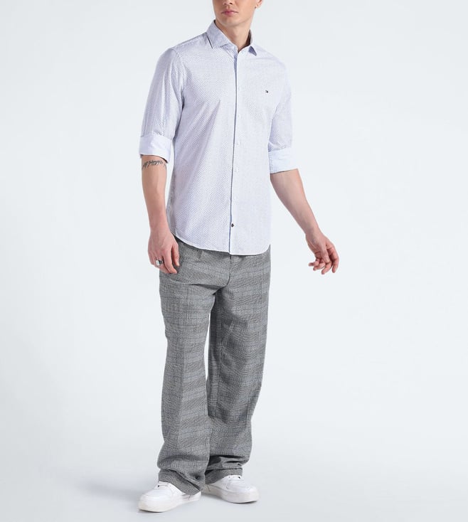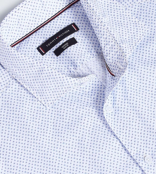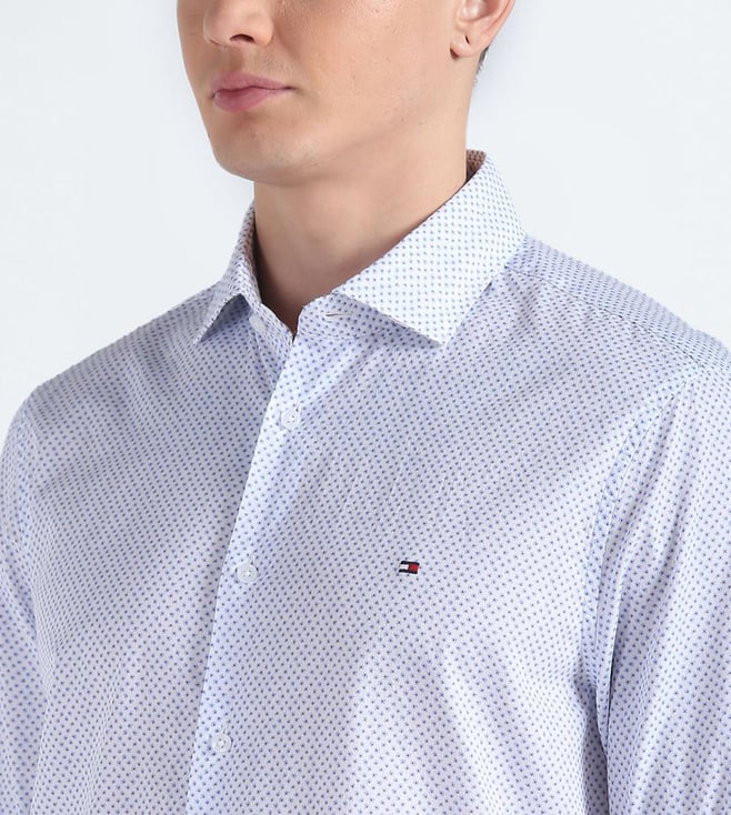TOMMY HILFIGER White & Light Blue Printed Slim Fit Shirt