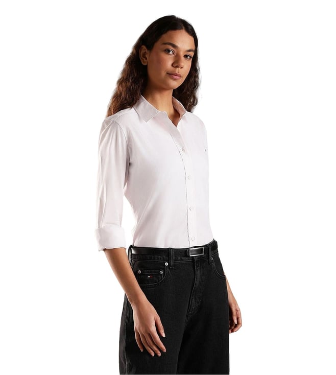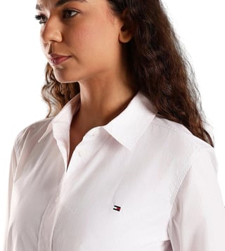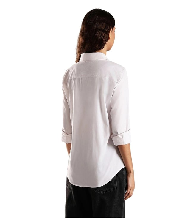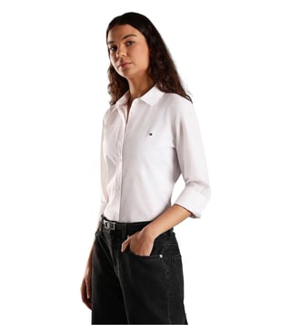 Elevate your casual wardrobe with this crisp white shirt from our Outlet collection. Crafted for the discerning woman, this woven cotton piece is a testament to timeless style. Its solid pattern and regular fit create a versatile canvas for any outfit. Perfect for basic casual activities, this western-inspired shirt effortlessly transitions from day to night. Layer it over a cami or knot it at the waist ¿ the styling possibilities are endless.