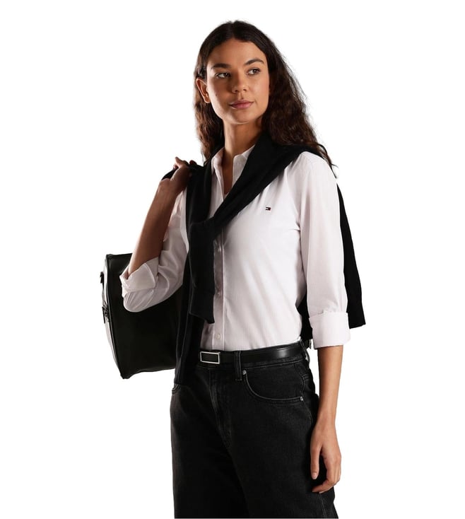 TOMMY HILFIGER White & Light Pink Regular Fit Cotton Shirt