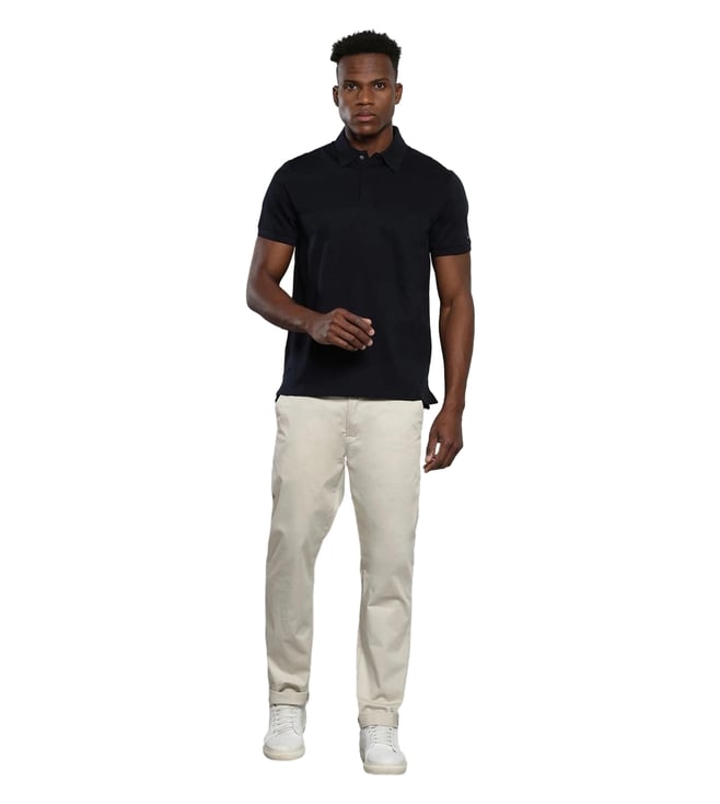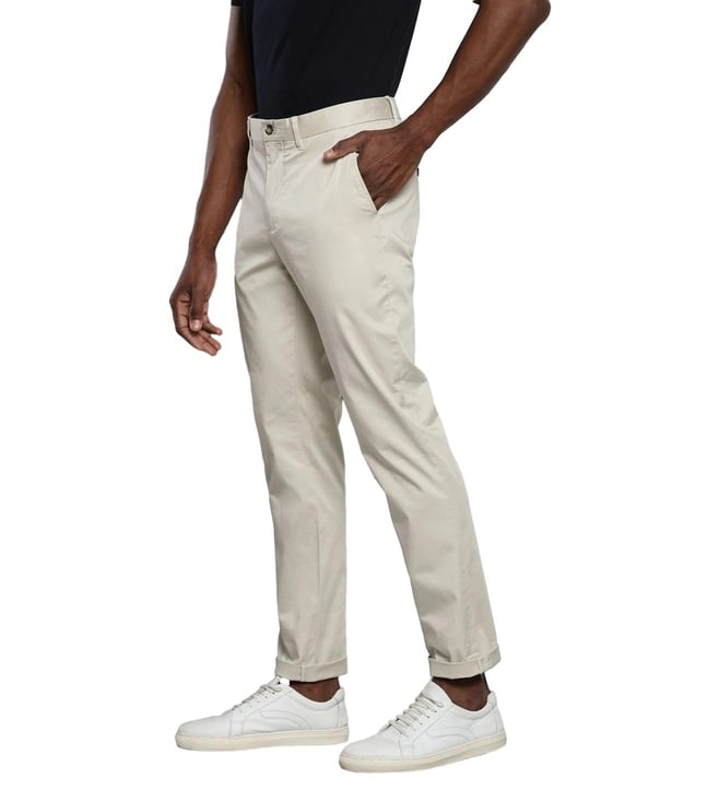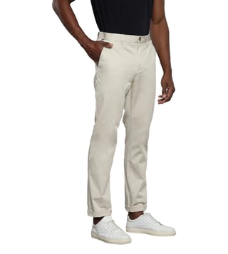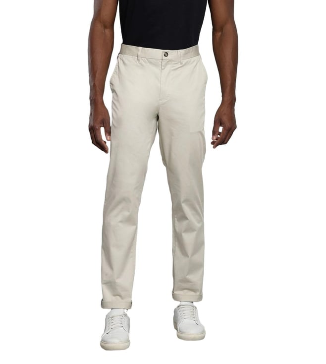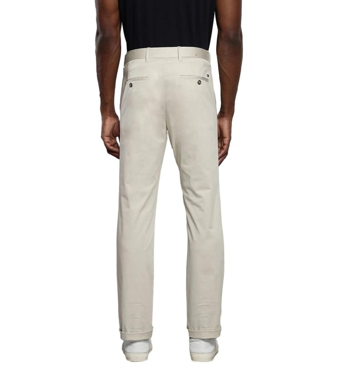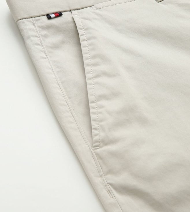 Reinvigorate your wardrobe with this pair of white regular fit chinos from TOMMY HILFIGER. Tailored to sartorial perfection from premium quality fabric, it assures a soft and soothing touch against the skin.
