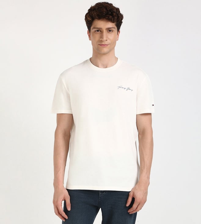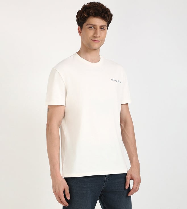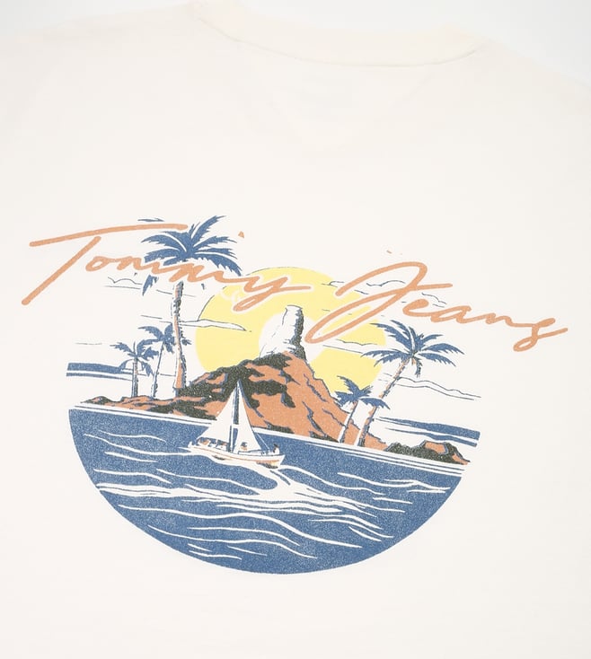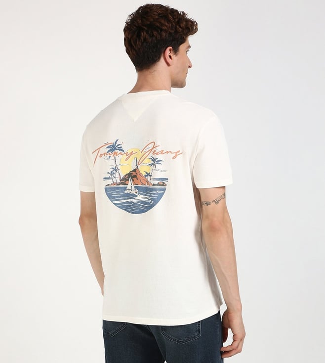 TOMMY HILFIGER White Cotton Regular Fit Graphic T-Shirt