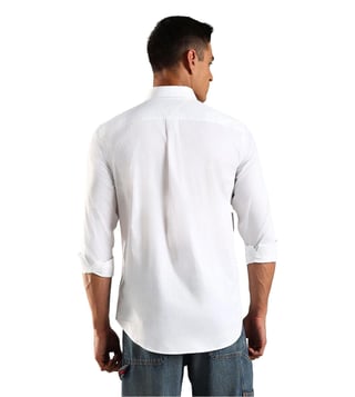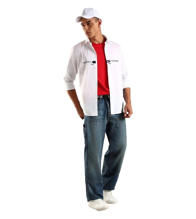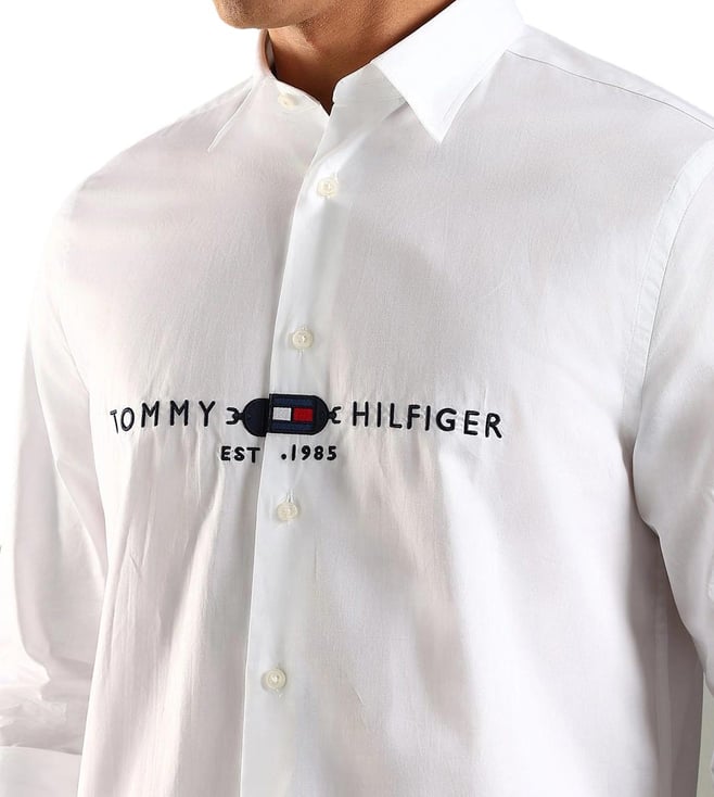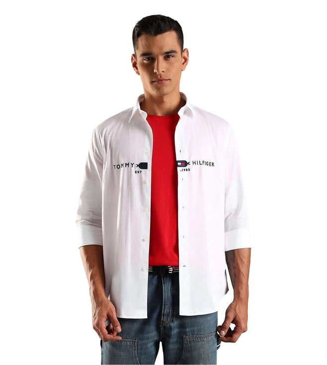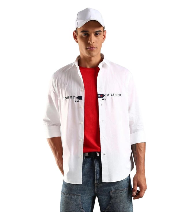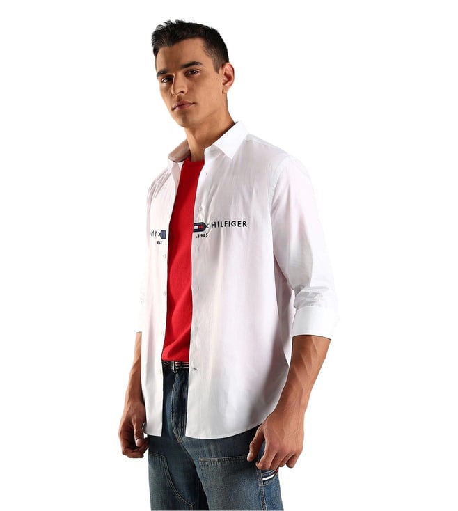 TOMMY HILFIGER White Cotton Regular Fit Logo Printed Shirt