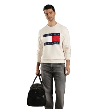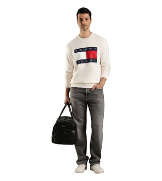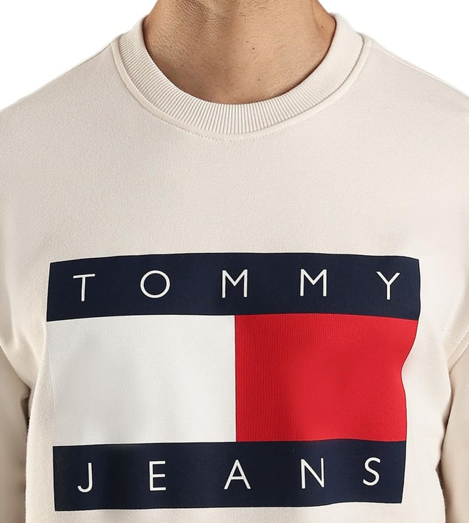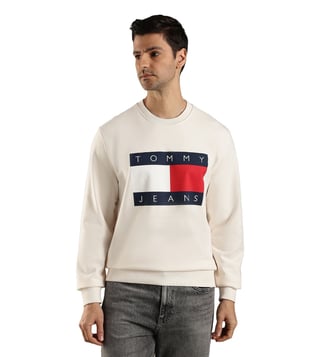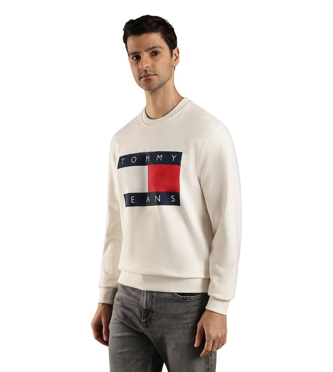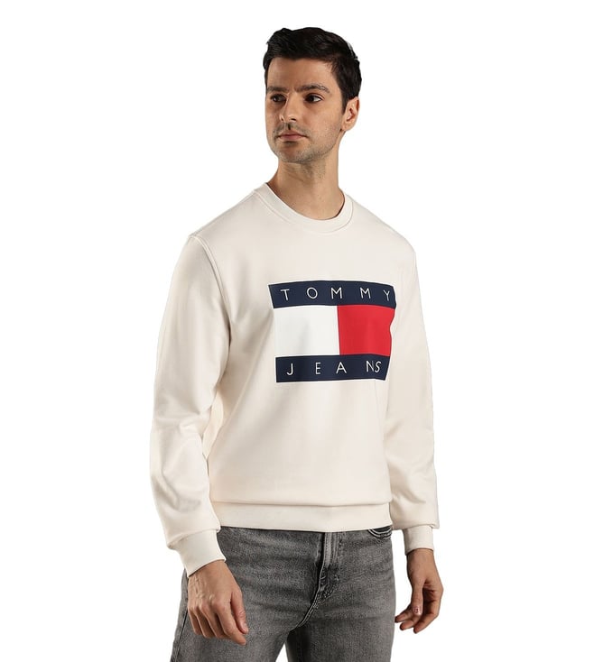 TOMMY HILFIGER White Cotton Regular Fit Logo Printed Sweatshirt