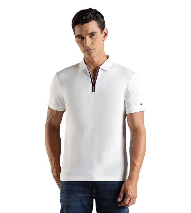 TOMMY HILFIGER White Cotton Regular Fit Polo T-Shirt