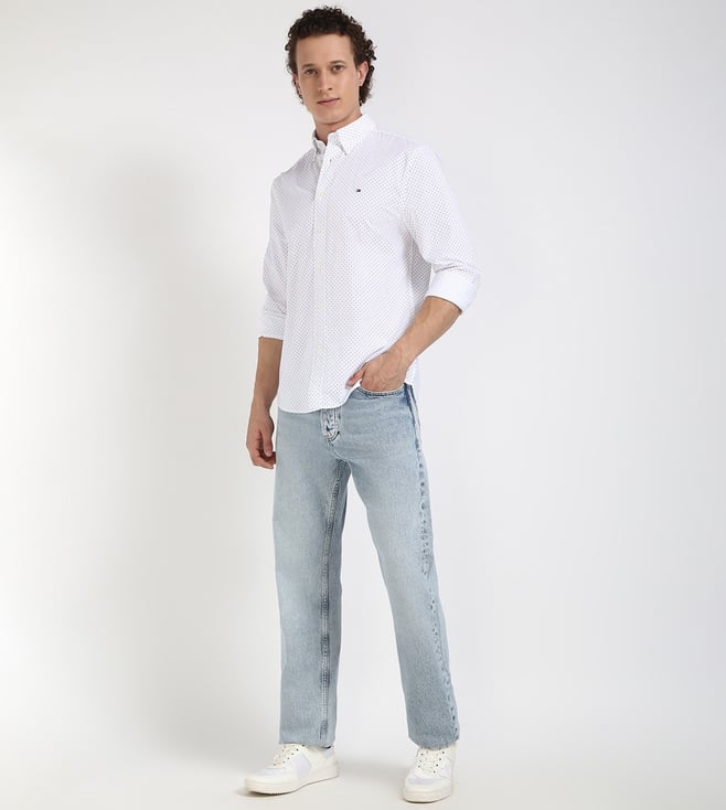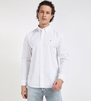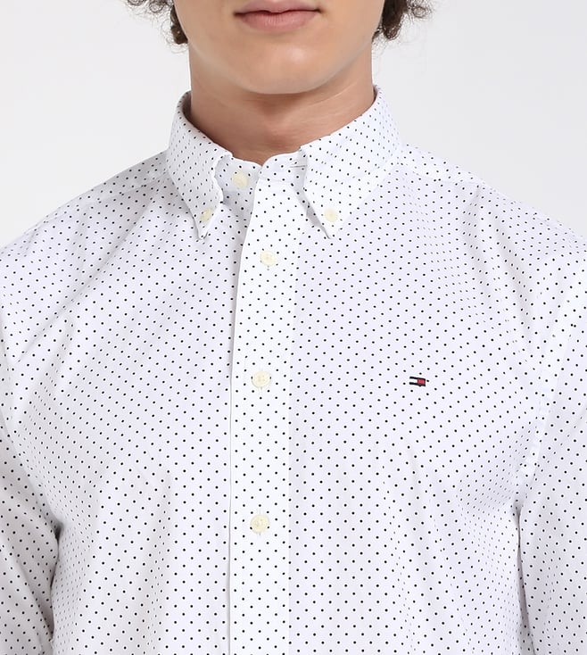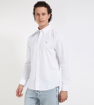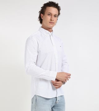 TOMMY HILFIGER White Cotton Regular Fit Print Shirt