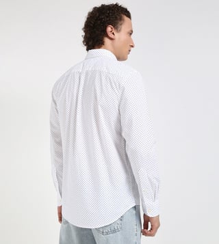 A classic canvas for your style. This crisp white shirt, crafted from soft cotton, boasts a timeless regular fit that flatters every frame. Full sleeves, adorned with a bold print, add a touch of personality, while the classic collar ensures a polished look. Perfect for layering or wearing solo, this shirt is a versatile wardrobe essential.