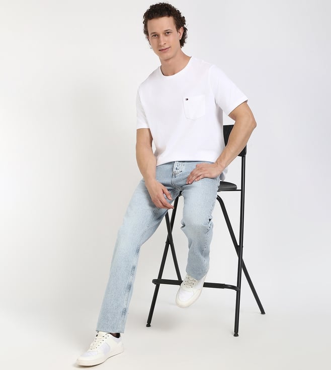 A classic canvas for your style. This men's t-shirt boasts a crisp white hue, crafted from soft, breathable cotton for all-day comfort. The regular fit ensures a relaxed yet flattering silhouette, while the short sleeves and round neck offer a timeless appeal. Perfect for layering or wearing solo, this versatile tee is a wardrobe essential for any occasion.