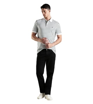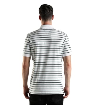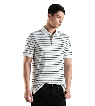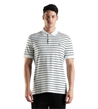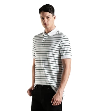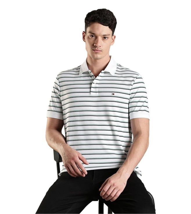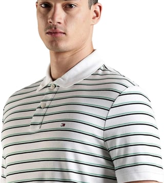 TOMMY HILFIGER White Cotton Regular Fit Striped Polo T-Shirt
