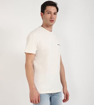 A classic crew neck tee in crisp white, crafted from soft, breathable cotton for all-day comfort. The regular fit ensures a relaxed yet flattering silhouette, while the short sleeves offer effortless style. Subtle typography adorns the sleeves, adding a touch of understated sophistication. Perfect for casual days, weekend adventures, or layering under a jacket.
