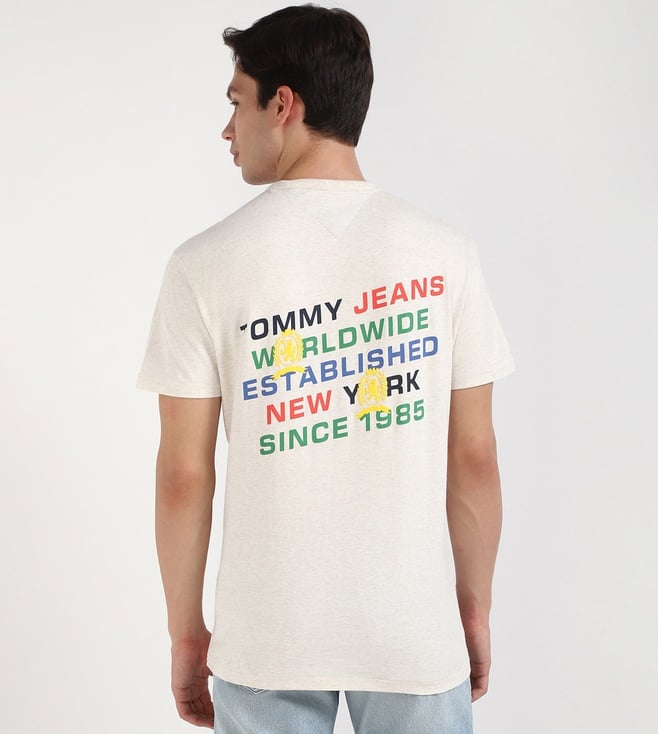 TOMMY HILFIGER White Cotton Regular Fit Typography T-Shirt