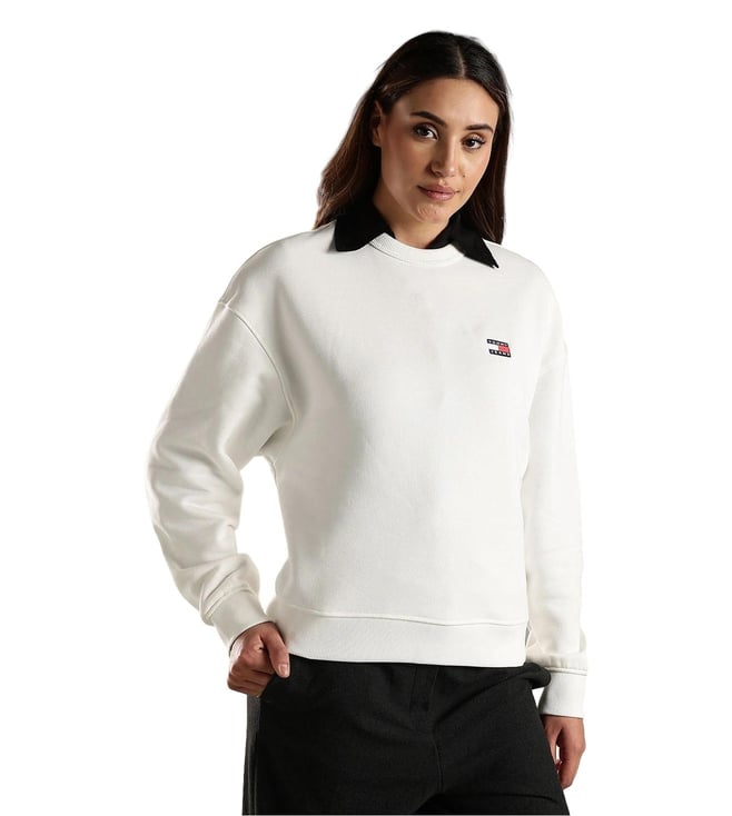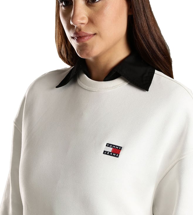 TOMMY HILFIGER White Cotton Relaxed Fit Sweatshirt