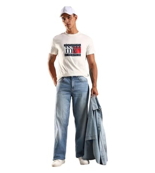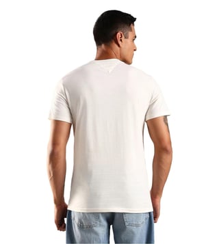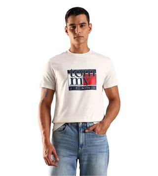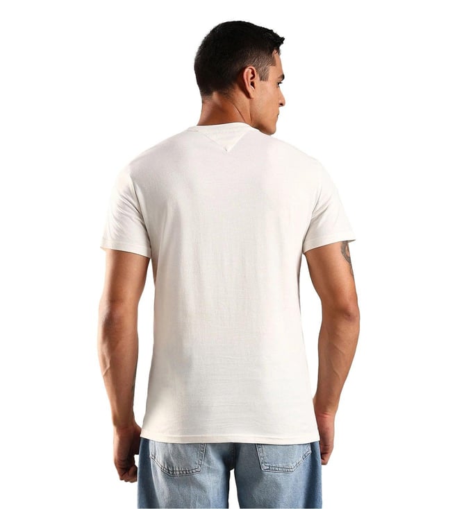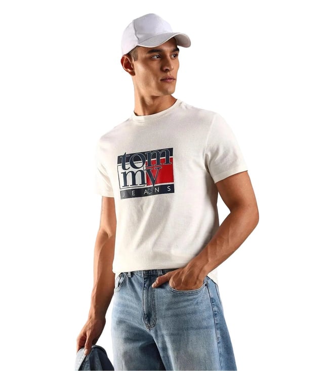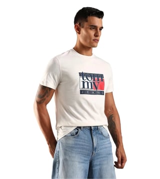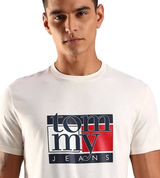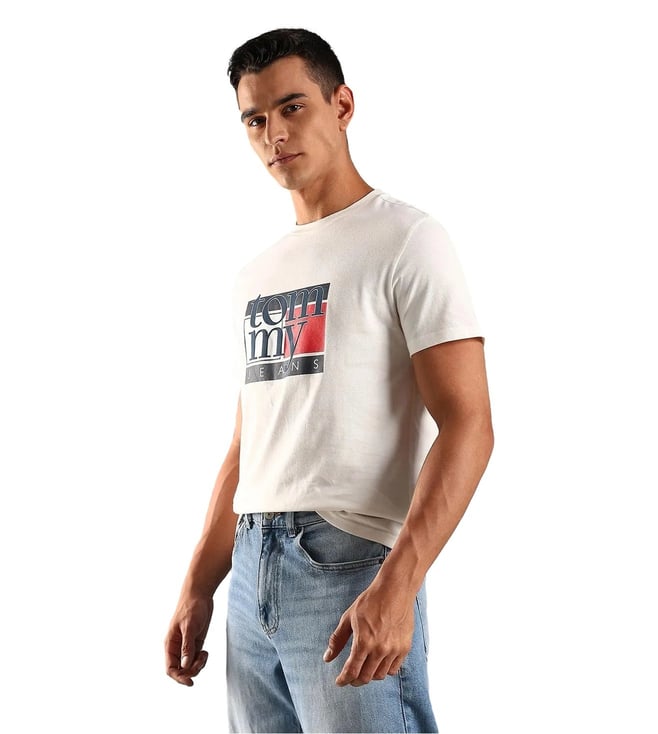 TOMMY HILFIGER White Cotton Slim Fit Logo Printed T-Shirt
