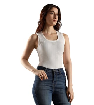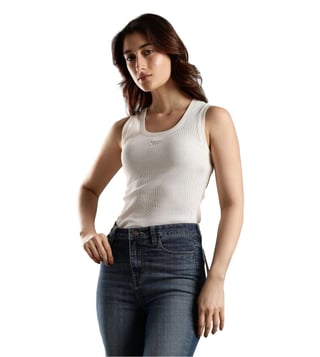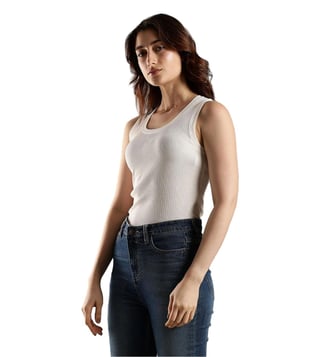 TOMMY HILFIGER White Cotton Slim Fit Tank Top