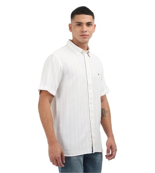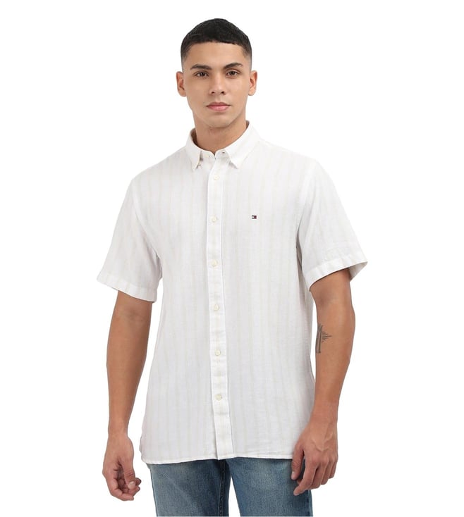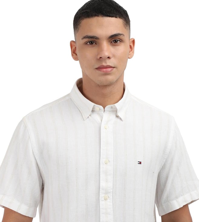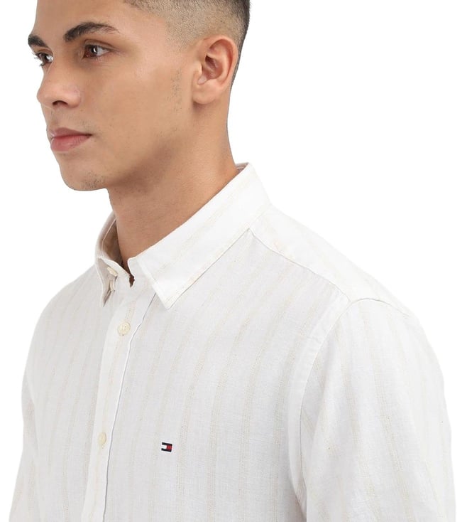 TOMMY HILFIGER White & Ivory Petal Stripes Regular Shirt