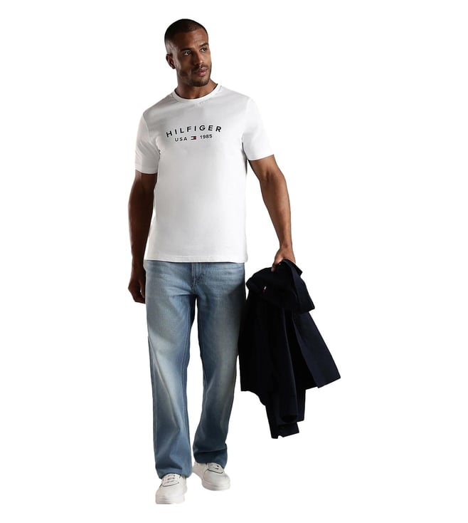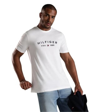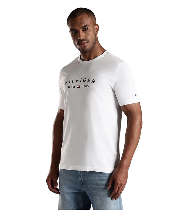 TOMMY HILFIGER White Logo Regular Fit Cotton T-Shirt