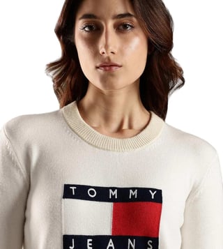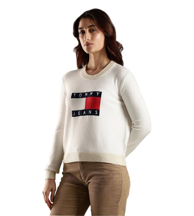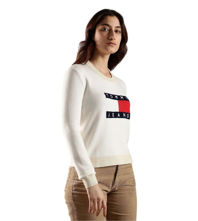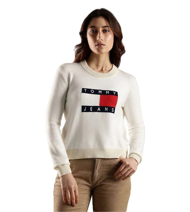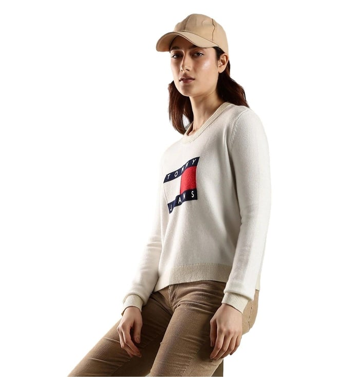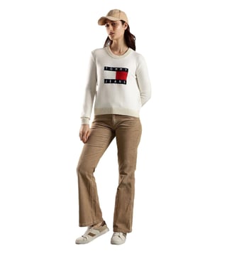 TOMMY HILFIGER White Relaxed Fit Logo Printed Sweatshirt