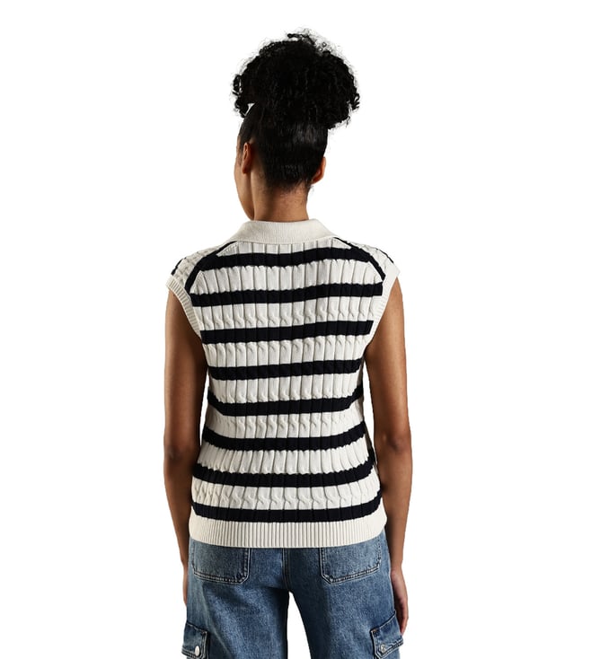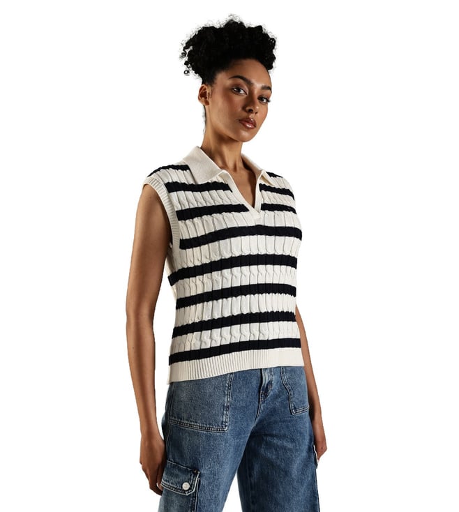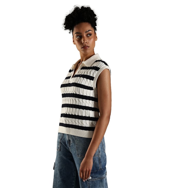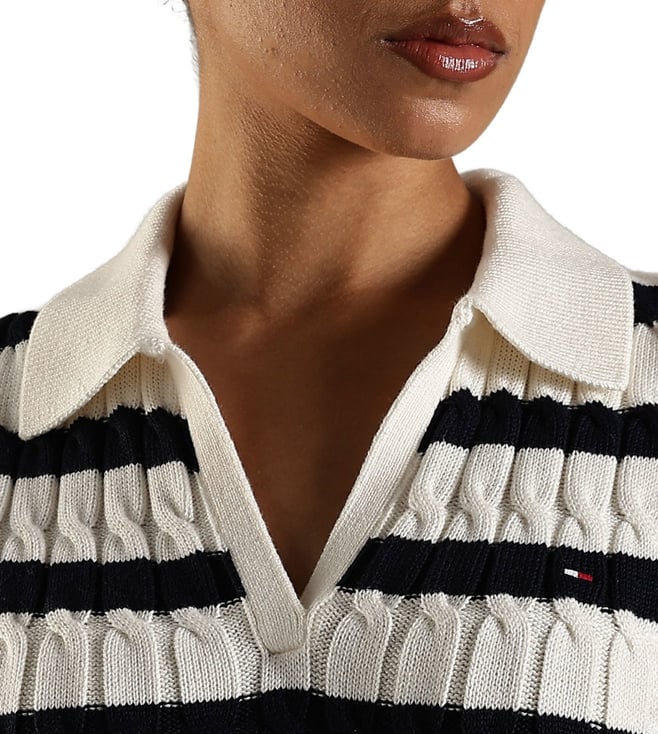 TOMMY HILFIGER White Striped Regular Fit Sweater