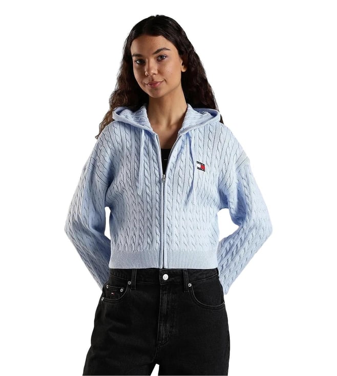 Blue Cotton Regular Fit Texture Hooded Jacket