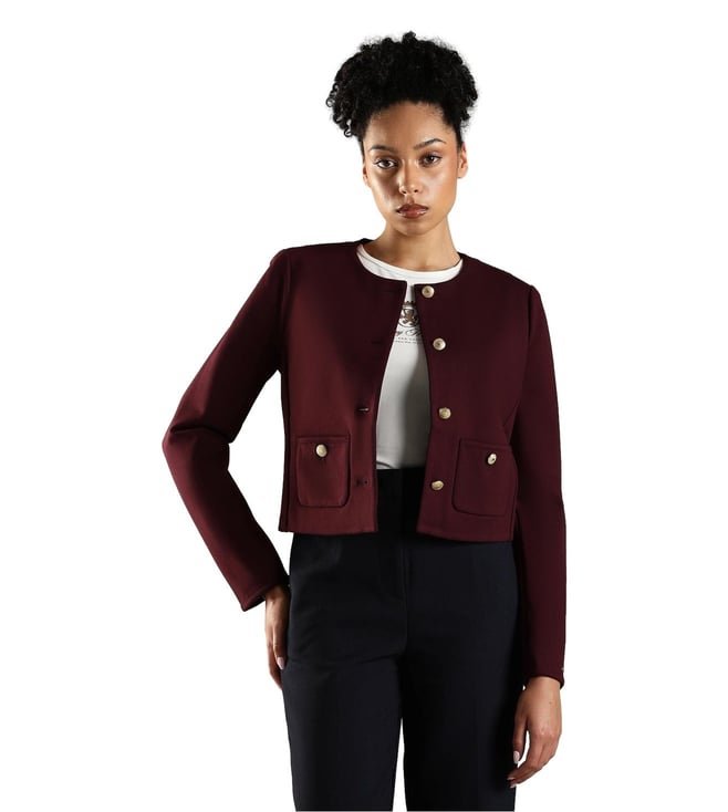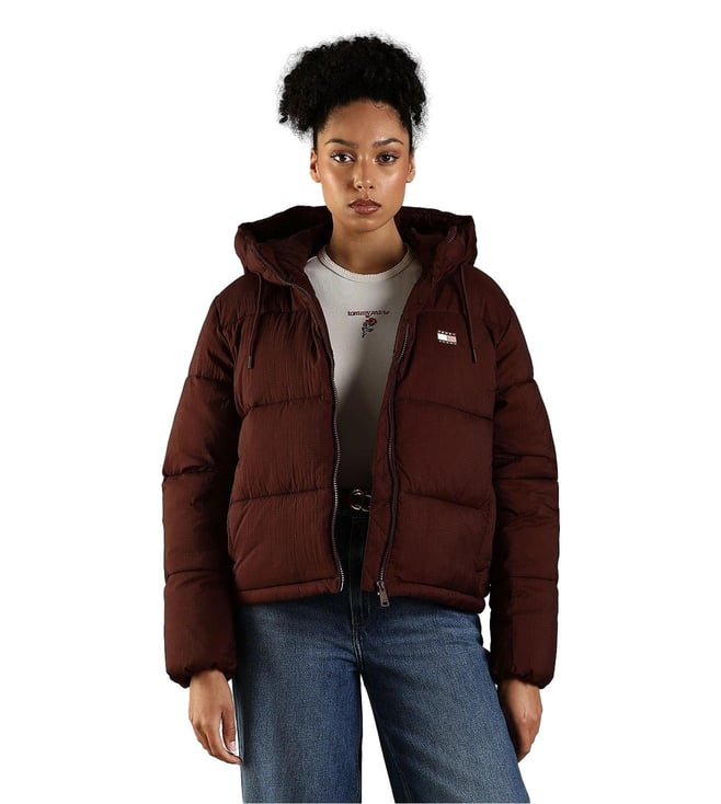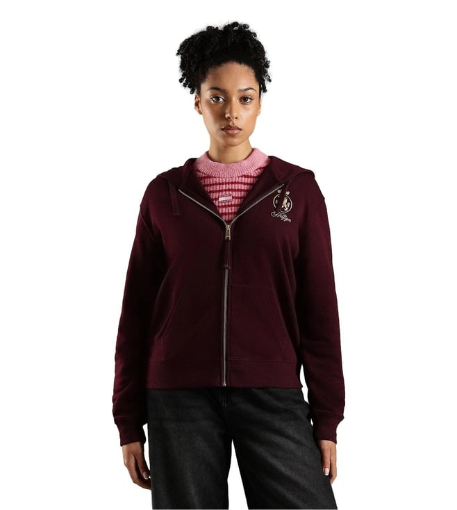 Maroon Cotton Regular Fit Logo Printed Hooded Jacket