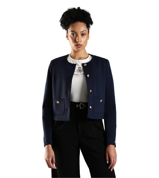 Classic Ithaca & Breezy Blue Regular Fit Polyester High-Neck Jacket