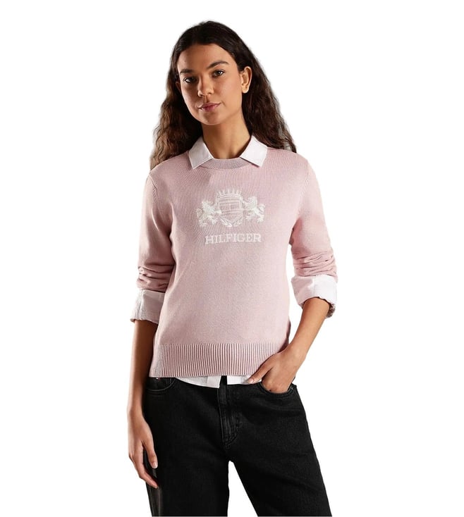 Foggy Pink Regular Fit Cotton Crew Neck Sweater