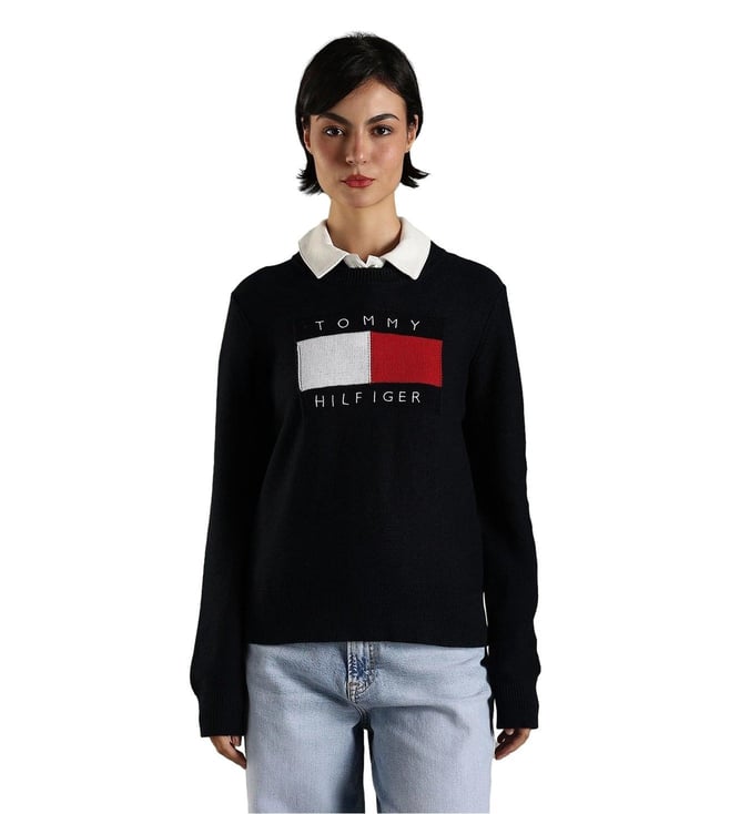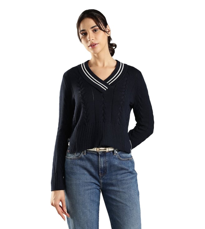 Dark Night Navy Relaxed Fit Acrylic Polo Collar Sweater
